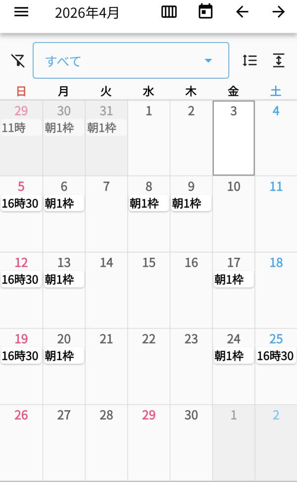 4月の日程決まりました! 全て9時からスタートで、カレンダーの時間は受付終了時間です! 「朝1枠」は9時からおひとりのみ受付してます🙇♂️ 最近日記あげなさすぎてごめんなさい🙇♀️ 4月はあげられるように頑張ります!